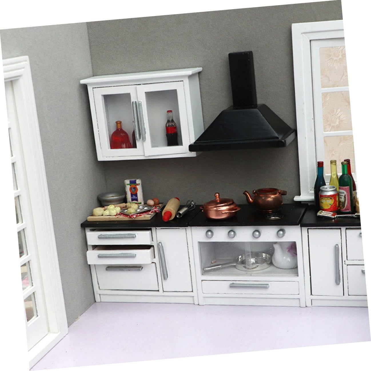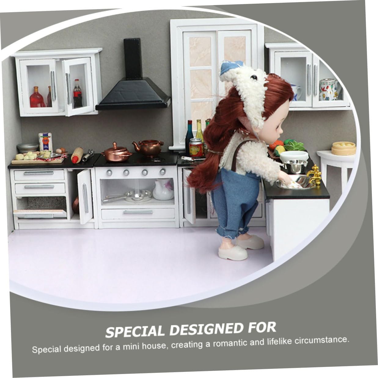Package Include 1 x Mimi Cooking Bench 1 x Mimi Mimi Long Plane Table 1 x Mimi Short Plane Table 2 x Mini Hanging Cabinets 1 Ventilator Characteristics - Material: Wood - Cooking Bench Size: About 8.9x3x6.3cm/3.5x1.18x2.48in - Long Plane Table Size: About 12.7x5x6.1cm/5x1.97x2.4in - Water Channel Size: About 12.4x5x6.1cm/4.88x1.97x2.4in - Color: Black - Short Plane Table Size: About 8.4x5x6.1cm/3.3x1.97x2.4in - Hanging Cabinet Size: About 8.9x3x6.3cm/3.5x1.18x2.48in -Product Info:Wooden mini furniture - Kitchen Ventilator Size: About 7x4.5x6.2cm/2.76x1.77x2.44in - Special designed for a mini house, creating a romantic and lifelike circumstance Mini Scene Furniture. - They are colorful and elegant, easily matching most mini house decoration styles. - This model looks really which with design and excellent workmanship Mini Wooden Furniture. - Adopts pure handcraft skill, made of wood material, very durable and delicate. - A great and accessory for who love DIY mini house Doll House Kitchen.Goods InformationMini House Kitchen It's made of wood material, it is mini house collection decoration.Miniature Gas Stove Meanwhile, increase the art for your doll house.Mini Kitchen Accessory Your small home will have a new look.Doll House Furnishings Mini design is lightweight, it is suitable for mini house layout decoration
